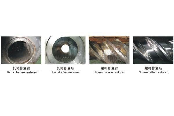 修复采用双合金等离子喷涂技术,修复后比母材更耐磨